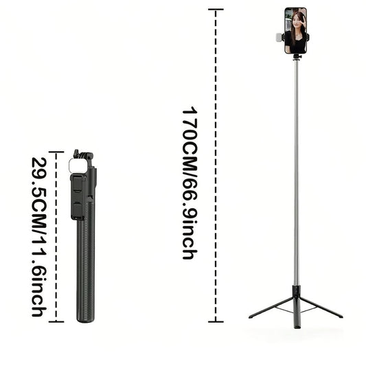 EYUVAA 1.7 Meter Selfie Stick with Tripod, Bluetooth Remote & Rechargeable LED Fill Light | 360° Rotating Phone Holder, Adjustable Height Stand for Mobile Photography & Video Recording