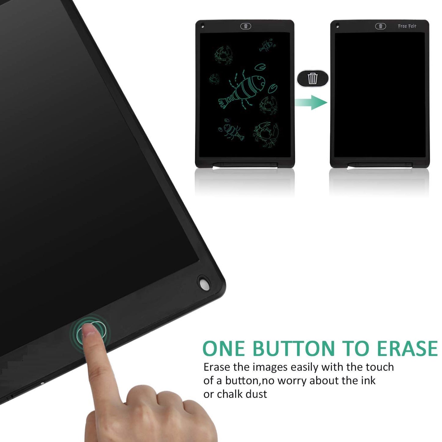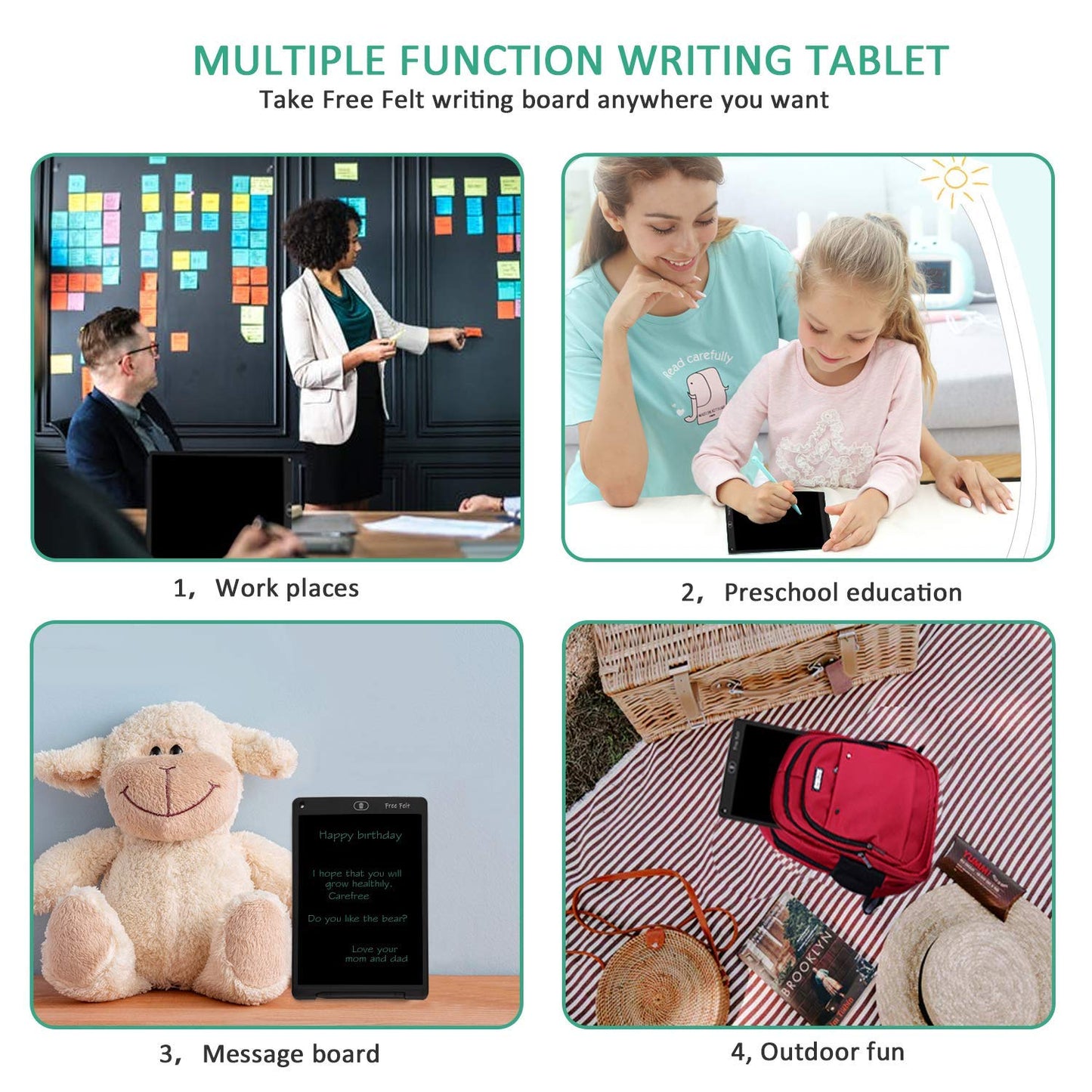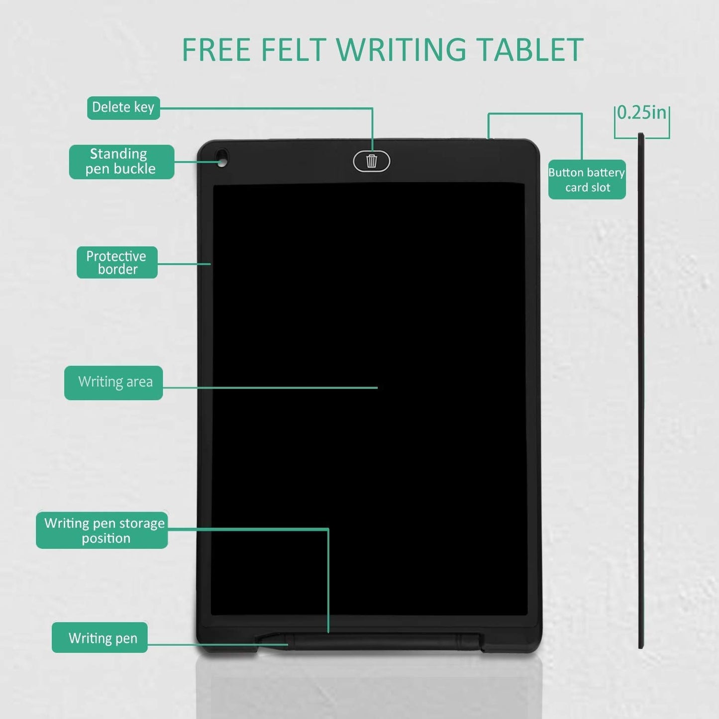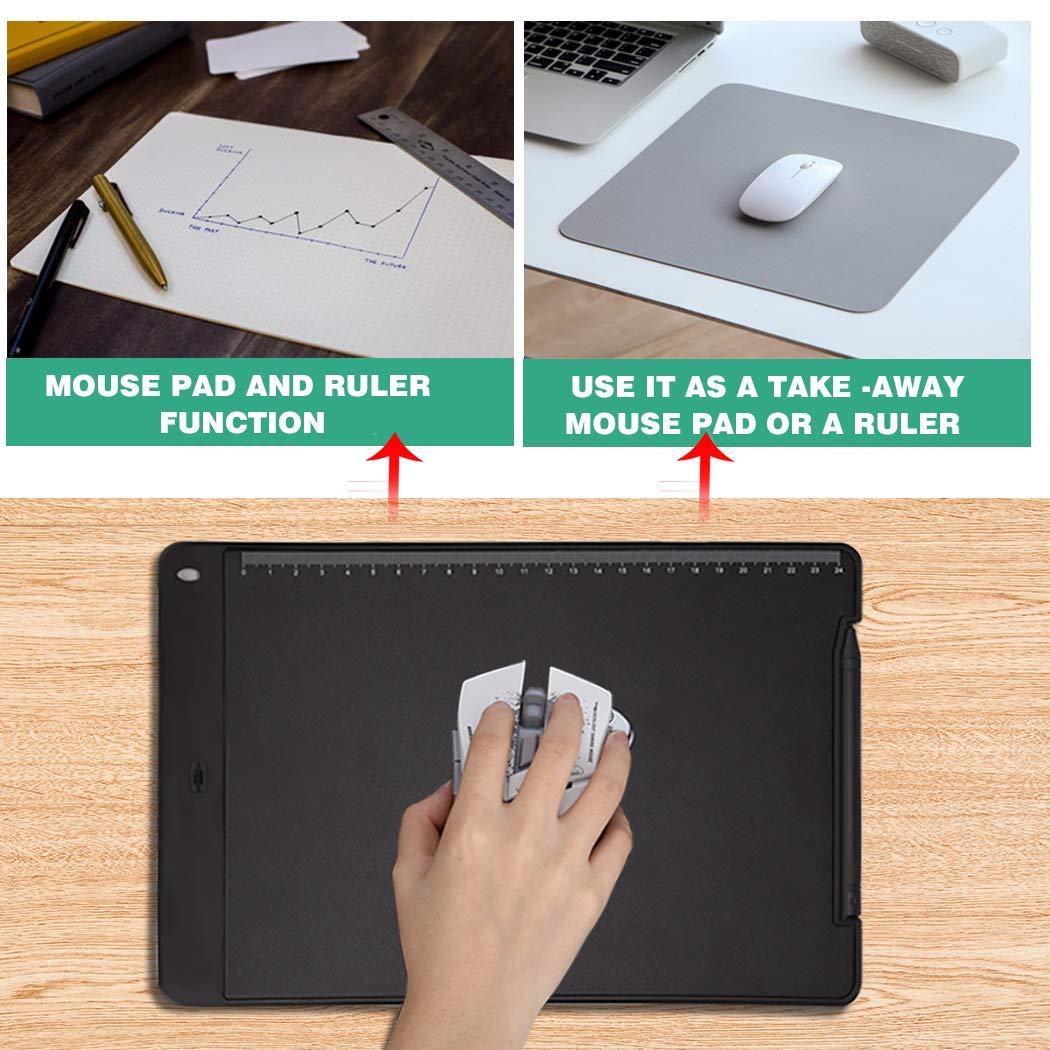 ✅ Features: *11-inch large screen tablet: The large size enables a more enjoyable writing and drawing experience. *Multiple-function writing tablet with Lock: You can keep the content on the writing tablet as long as you want. *Fun drawing board for kids: Teach your kids to draw or learn letters and numbers whenever and wherever. *Feels like pen and paper: Reduce your screen time and enjoy the feeling to write like we never grow old. *One button to erase: No chalk dust anymore, use one button to erase the image on the writing tablet easily whenever you want. *Cool mouse pad and ruler function: You have a takeaway office right away *Stylus pen clip: The stylus pen is made of durable material and has a longer lifespan, you won't lose your pen easily for it has a stylus pen clip *Image solution: Single color and thin fuselage.