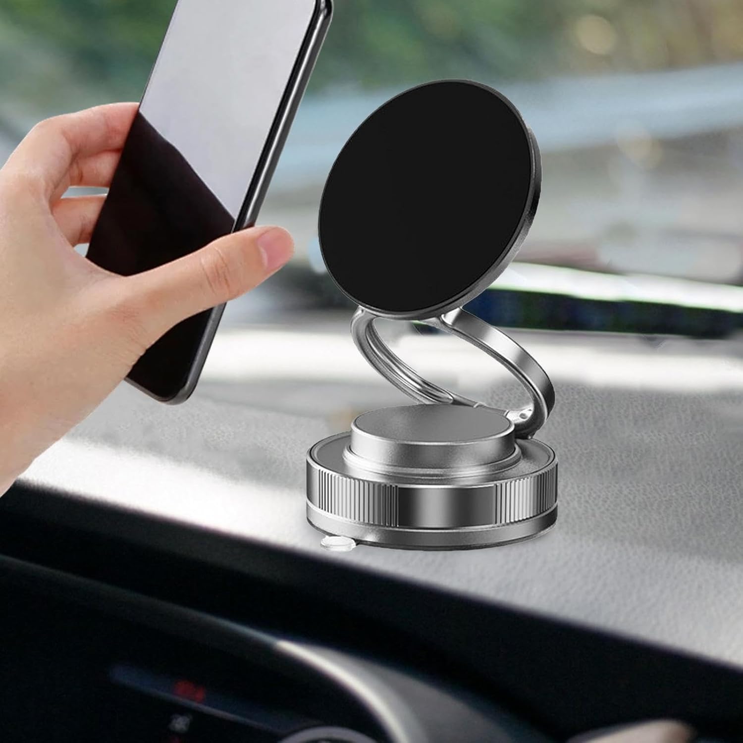 EYUVAA 360° Vacuum Suction Magnetic Phone Holder for Car| Foldable Metal Mobile Holder Car Mount for Dashboard, Windshield, Mirror| Compatible with All Smartphones
