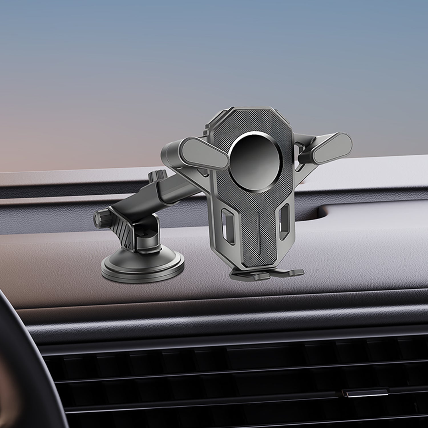 ✅ONE-HAND OPERATION PHONE HOLDER WITH SMART AUTO GRAVITY LOCK: The intelligent gravity-lock design makes this a true one-hand operation phone holder. Simply place your device into the car phone holder, and the arms automatically tighten for a secure grip.