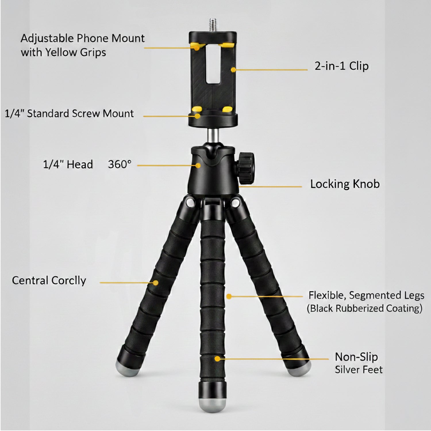 EYUVAA Flexible Tripod Stand for Mobile with 360° Rotating Ball Head Mount| Selfie Stick Tripod Phone Holder with 2 in 1 Clip for Video Recording, Live Streaming & Vlogging