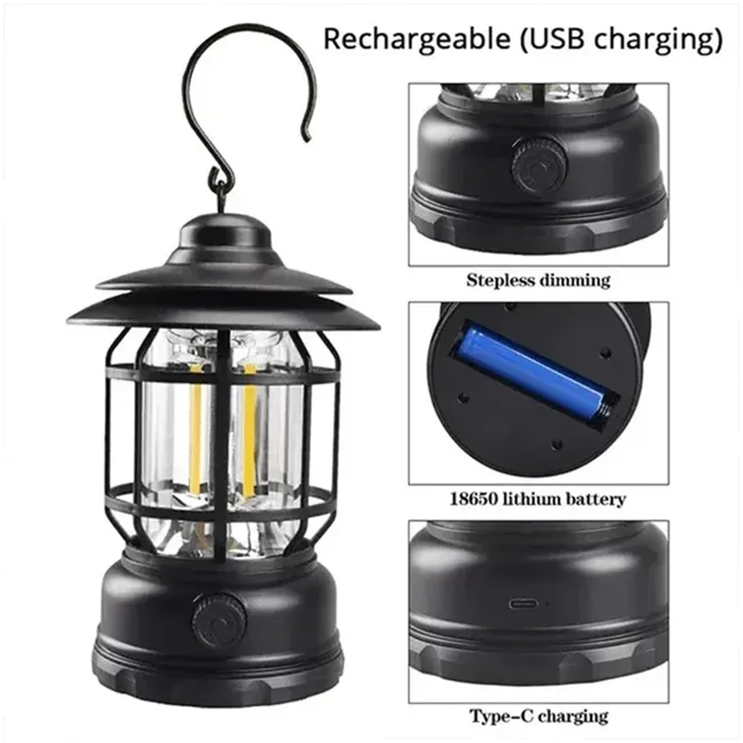 EYUVAA LED Rechargeable Camping Lantern| USB Powered Vintage LED Camping Light, Waterproof and Dimmable Lamp for Outdoor, Hiking, Tent, Home and Emergency Use
