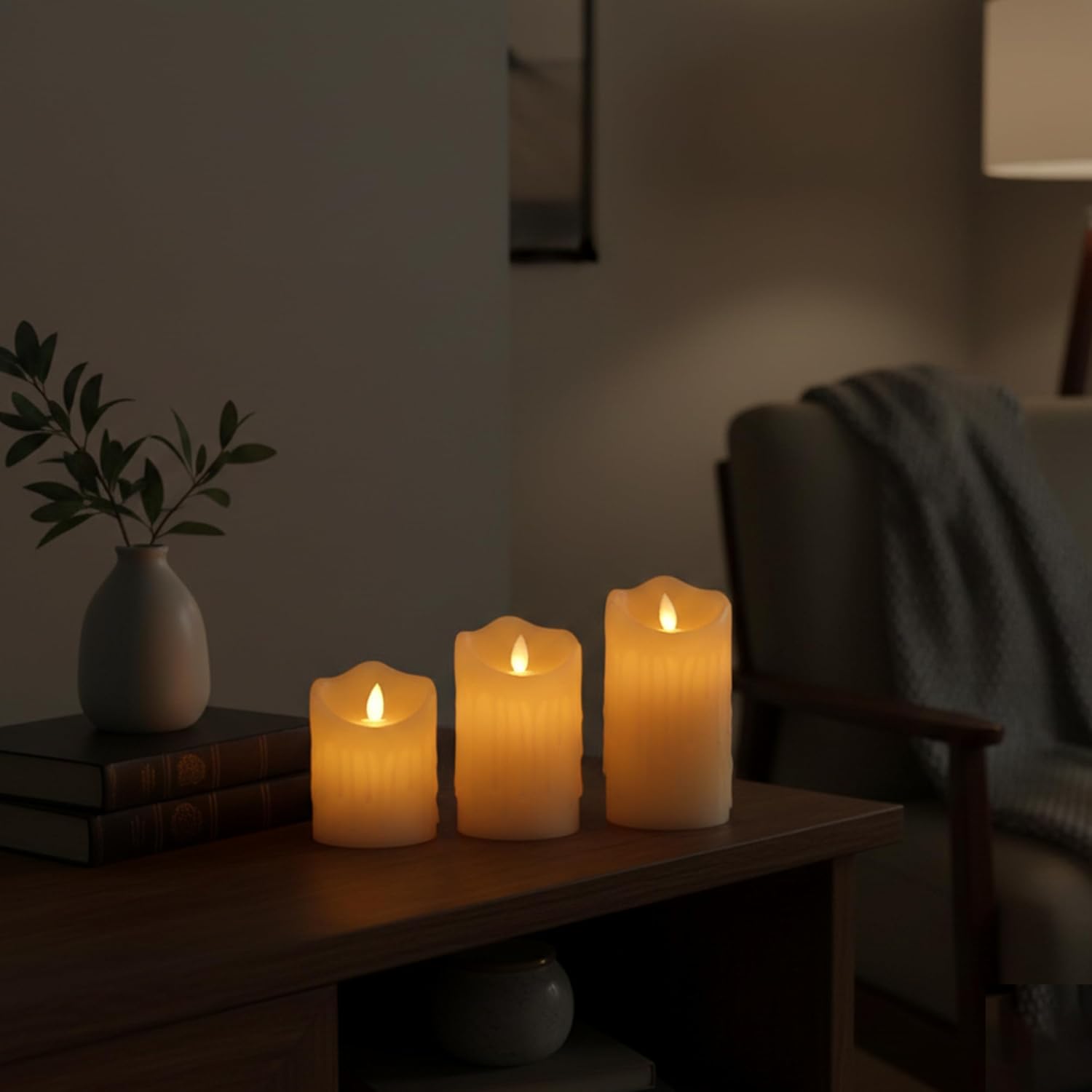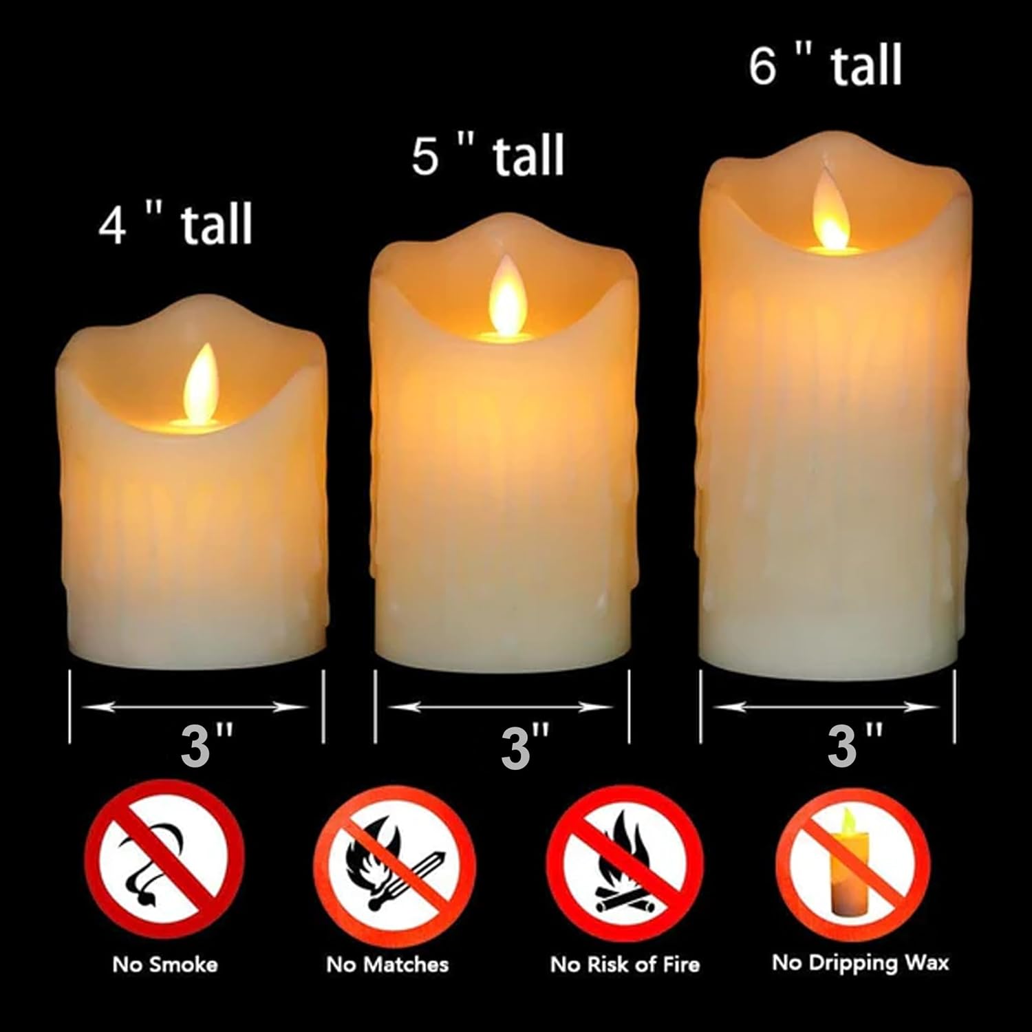 ✅REALISTIC MELTED WAX LED CANDLES – AUTHENTIC REAL CANDLE LOOK:- Designed with a natural drip-style melted wax finish, these LED pillar candles closely replicate the appearance of real wax candles. The uneven melted edges, smooth surface, and warm glow deliver a premium, lifelike candle look while eliminating wax mess, smoke, soot, and fire hazards.