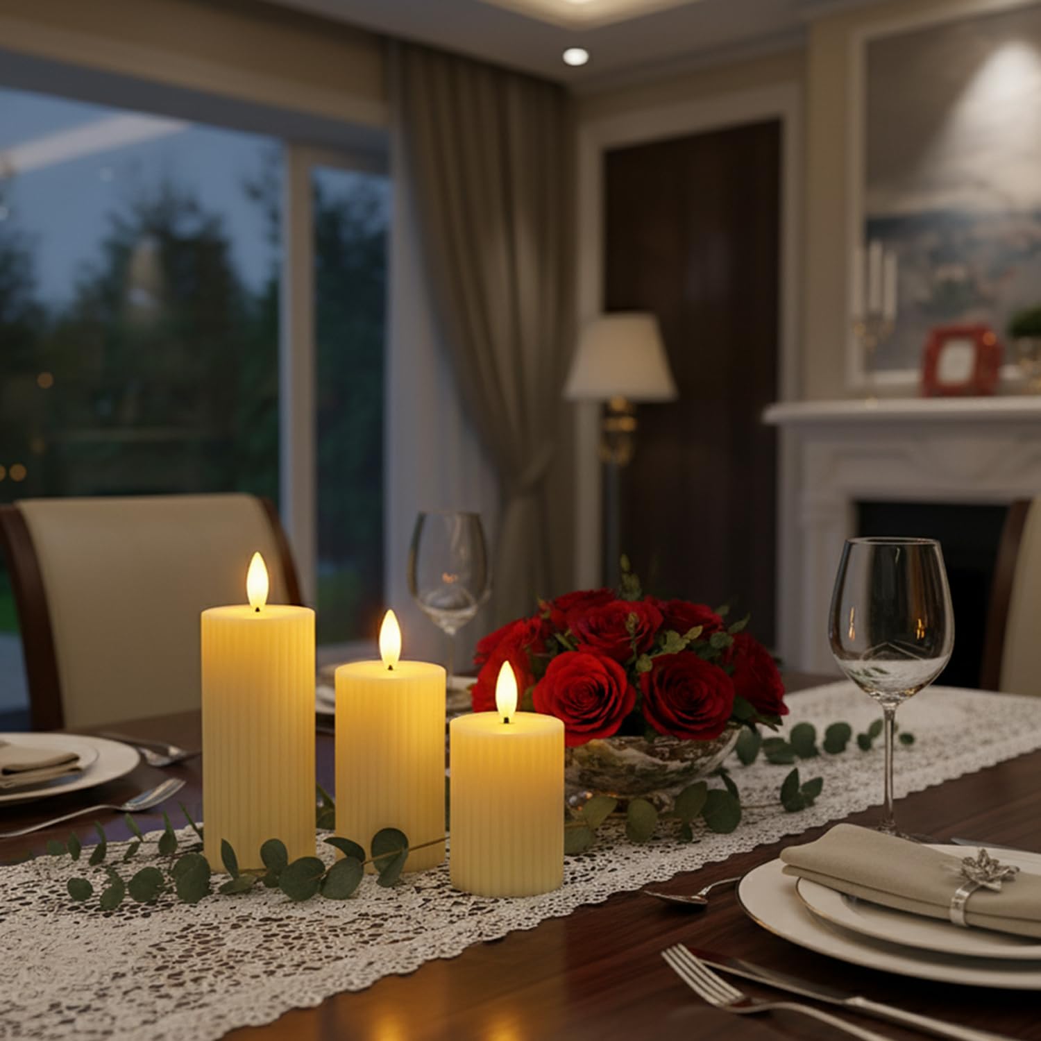 ✅Flickering LED Pillar Candle: EYUVAA LED pillar candles feature a lifelike 3D wick and warm yellow flickering effect, creating a cozy, natural candlelight ambiance that mimics real flames perfectly. Ideal for home decor, romantic dinners, and relaxing evenings.