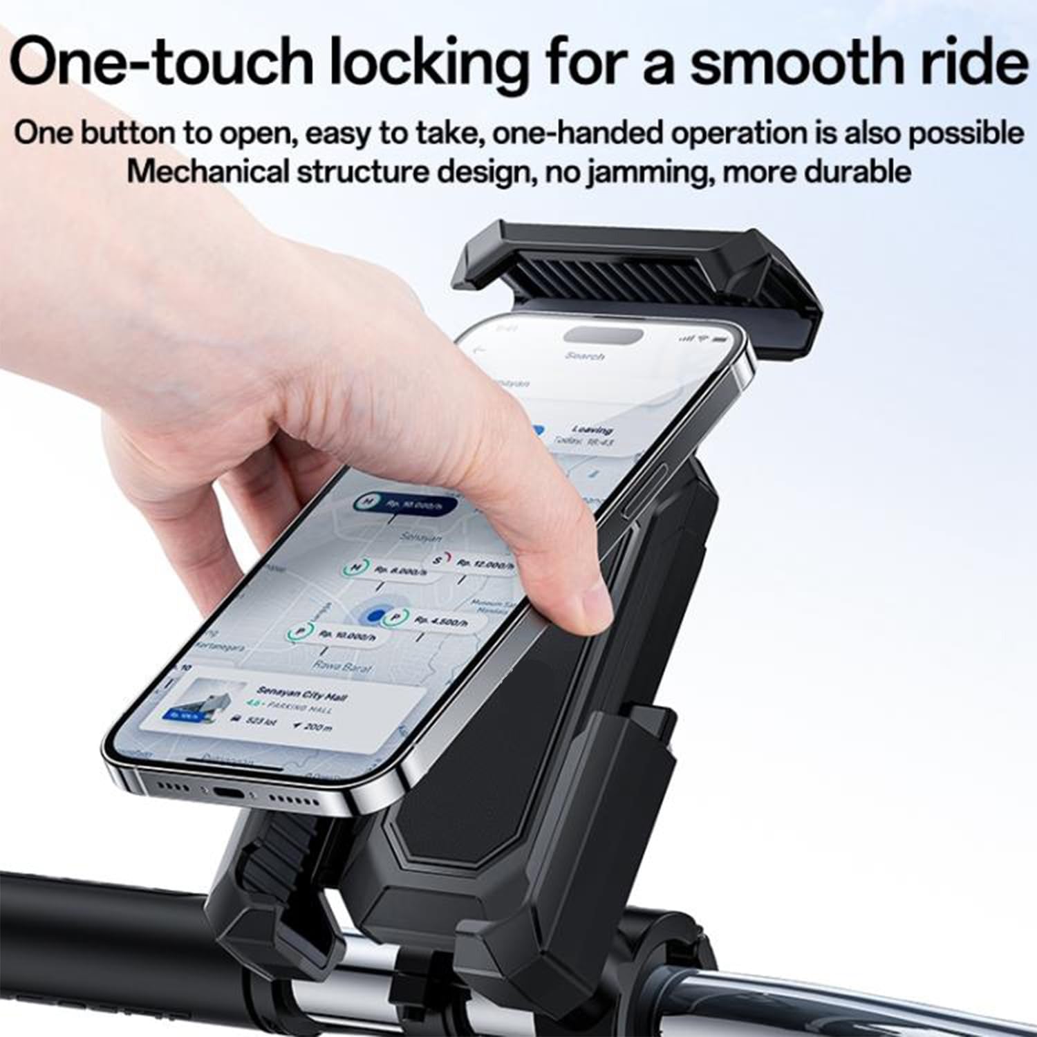 ✅All-Weather Riding Companion for Bikes & Motorcycles – Designed for outdoor durability, this mobile holder for bicycle waterproof use protects your device from dust, wind, and light rain.