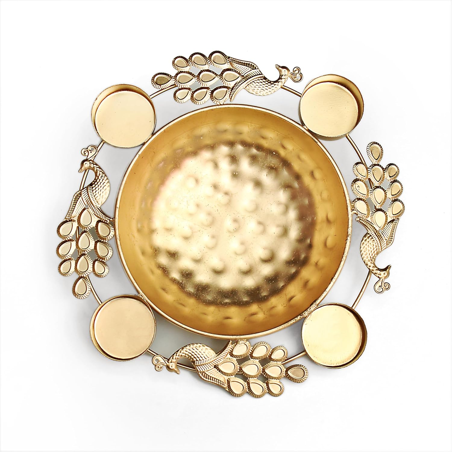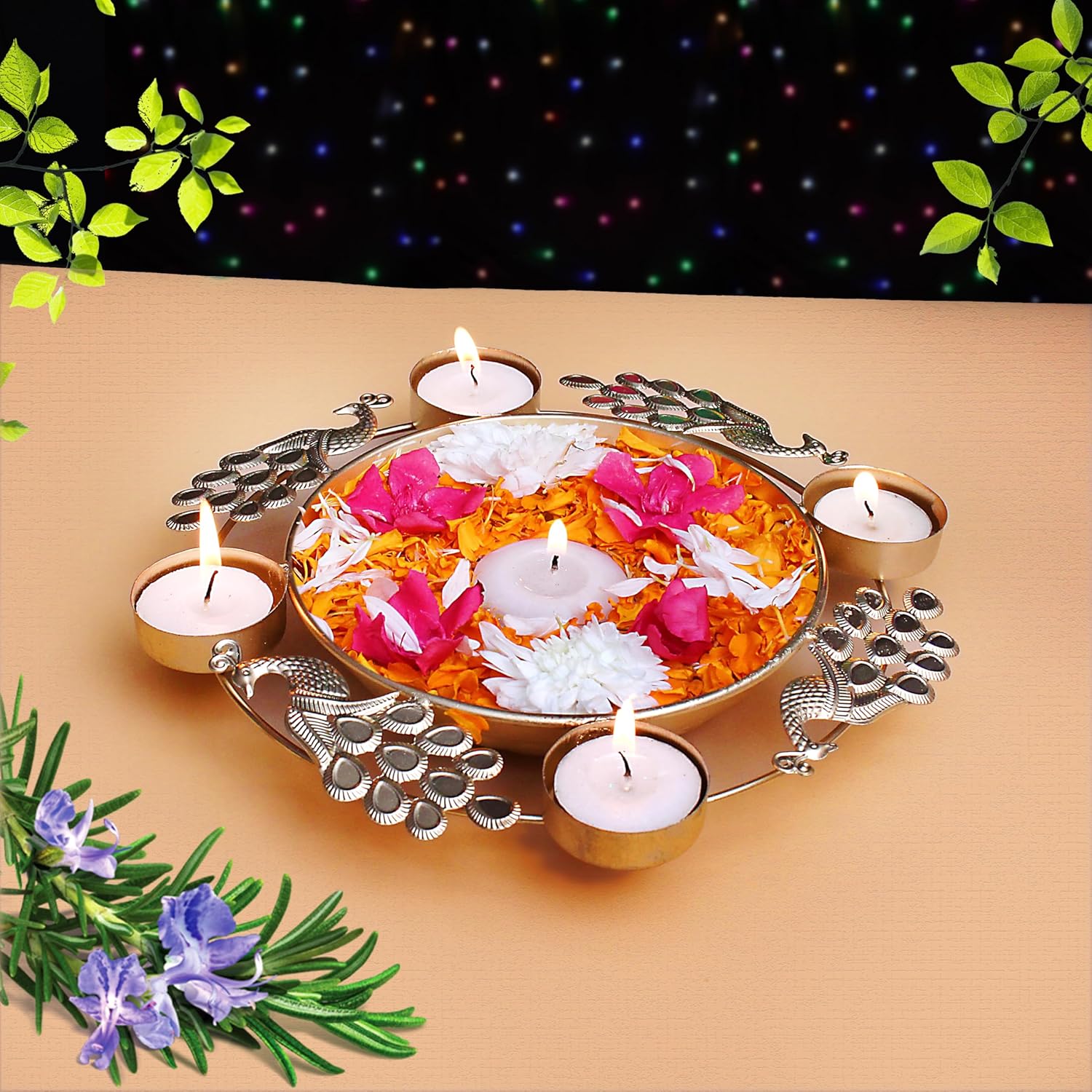 EYUVAA Peacock Urli With Tealight Holder| Diya Decorative Bowl for Floating Candles and Flowers, Home Décor, Weddings, Diwali Celebration