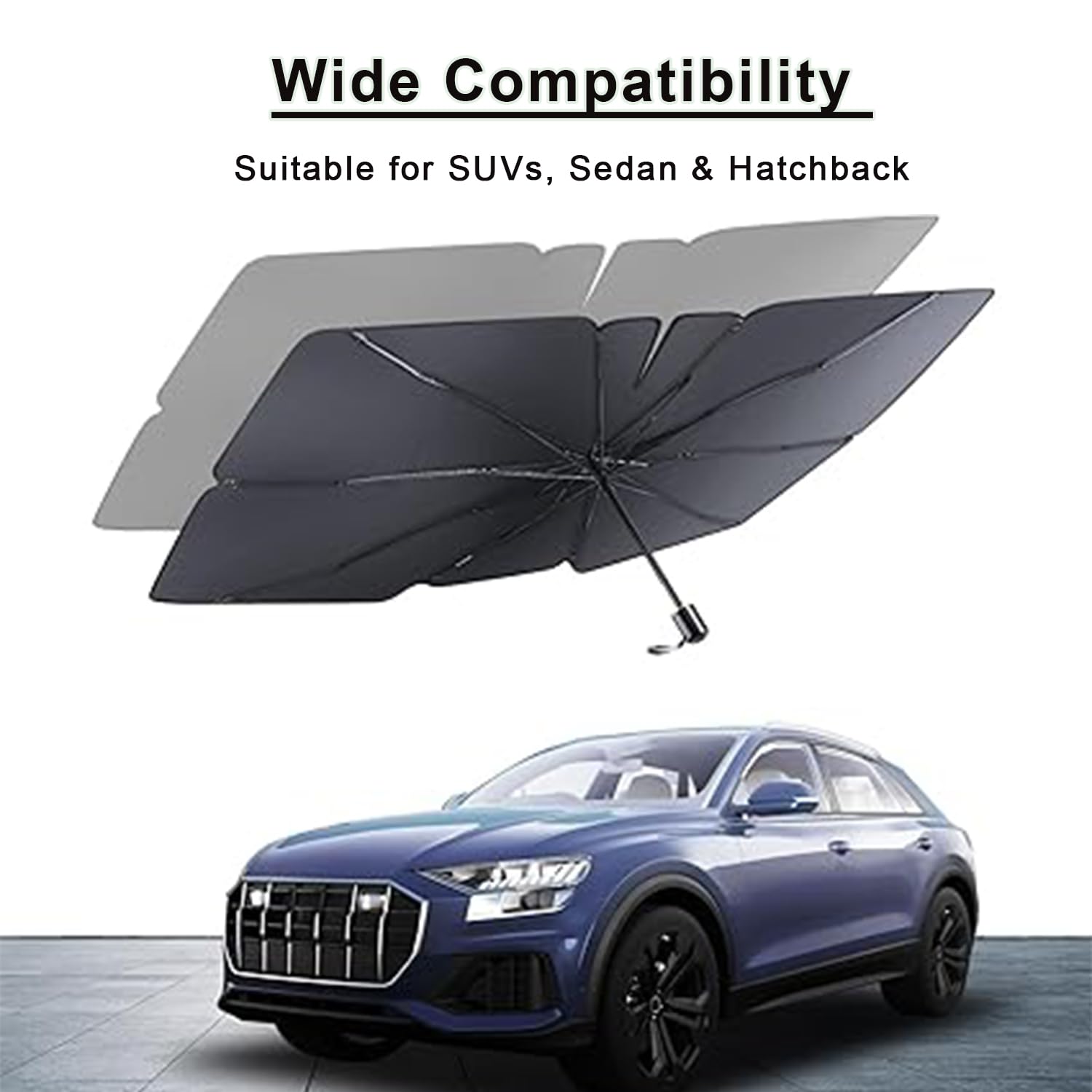✅Works on Most Vehicles: The Umbrella Protector collapses to less than 1 square foot, and its universal size fits the windshields of most trucks, cars, and SUVs.
