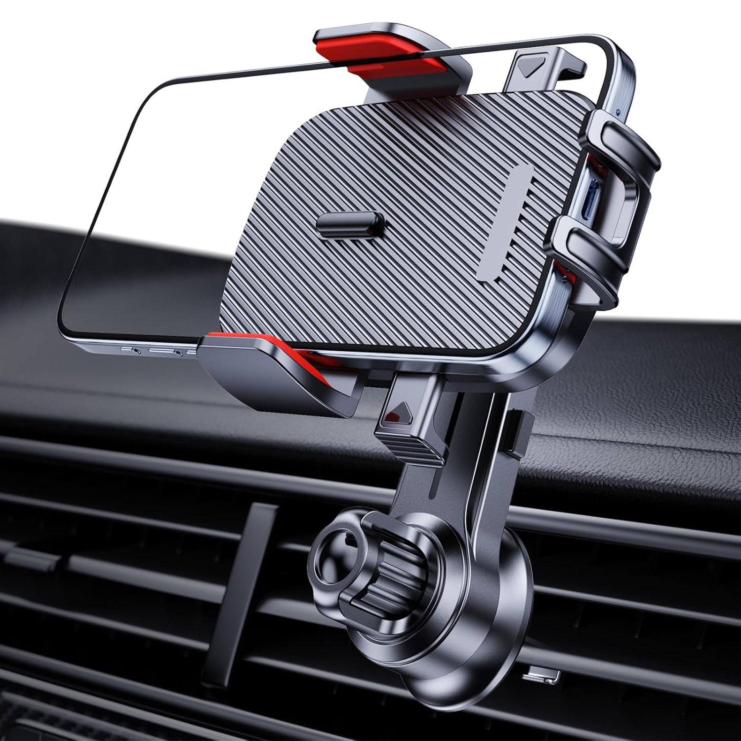 ✅ADVANCED LOCKING CLIP WITH ANTI-SLIP TEETH DESIGN:- Built with anti-slip inner teeth, this car phone holder AC vent mount locks tightly onto vent blades to reduce unwanted movement.