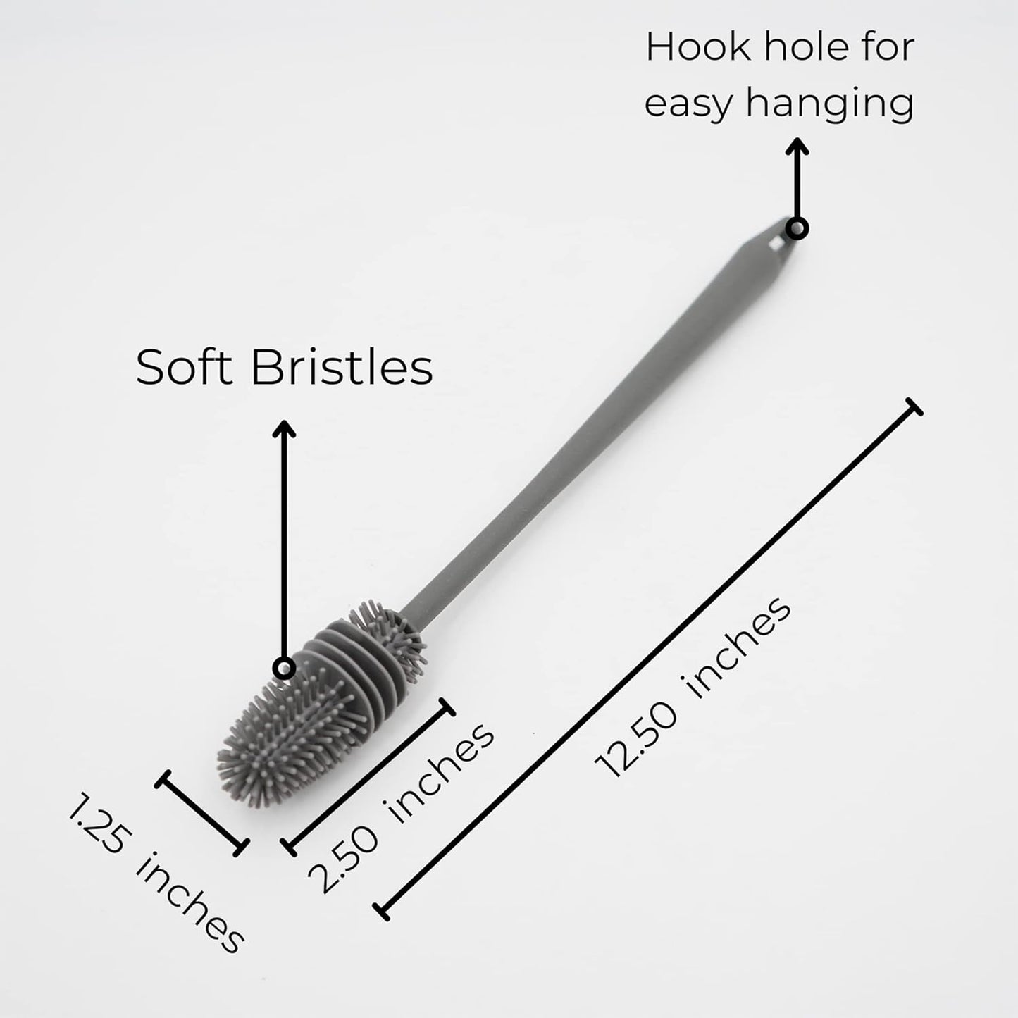 ✅No more scratches - The easy-to-clean, non-scratching silicone bristles of our 12.5-inch bottle cleaning brush are not prone to sticky substances